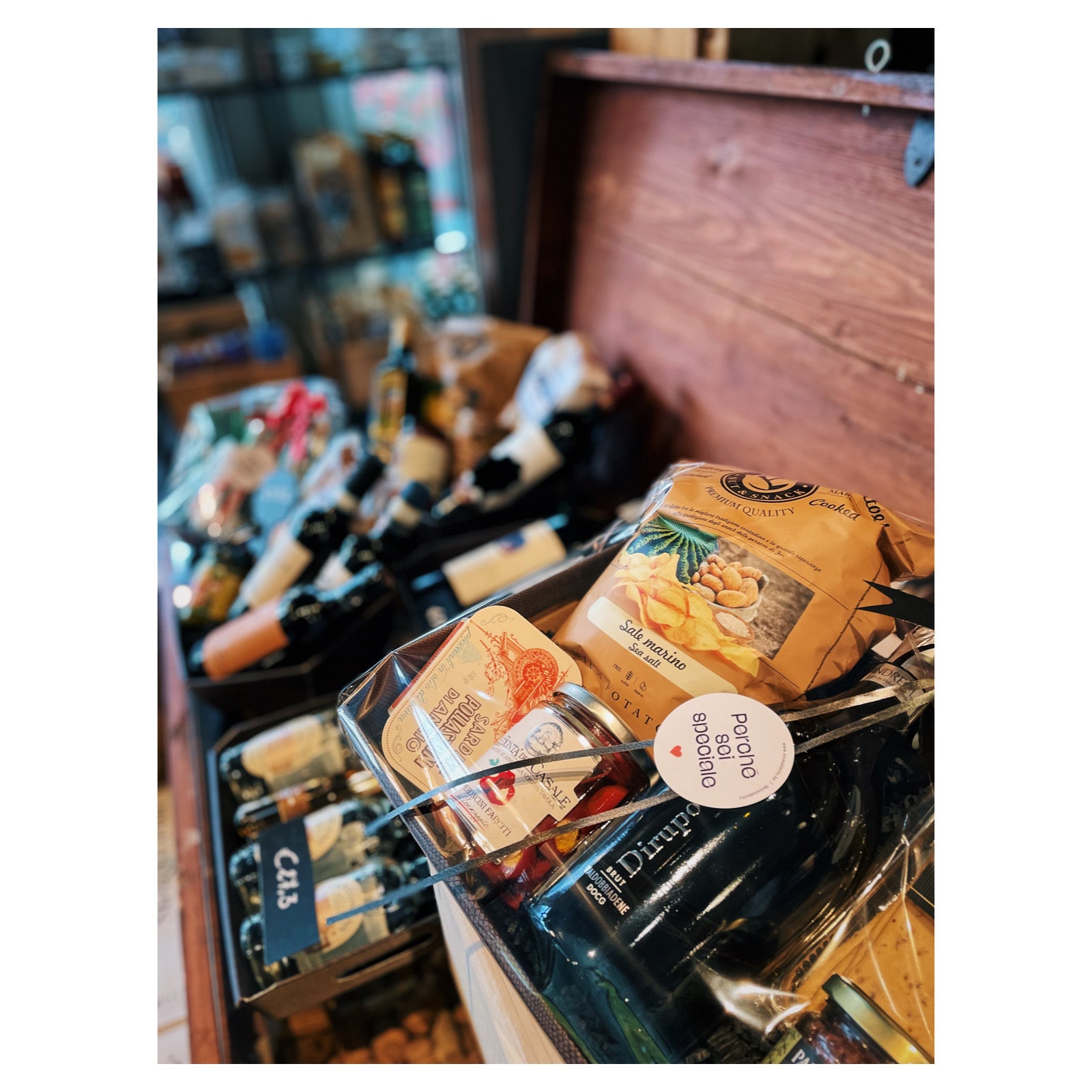 Een fijn flesje wijn met de heerlijkste Italiaanse specialiteiten, we stellen in onze winkel graag samen met jou een geschenkmand op maat samen.
